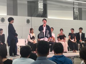 ▲新師範代の代表としてメッセージを送るイメージ・ダーニング教室土田実季師範代