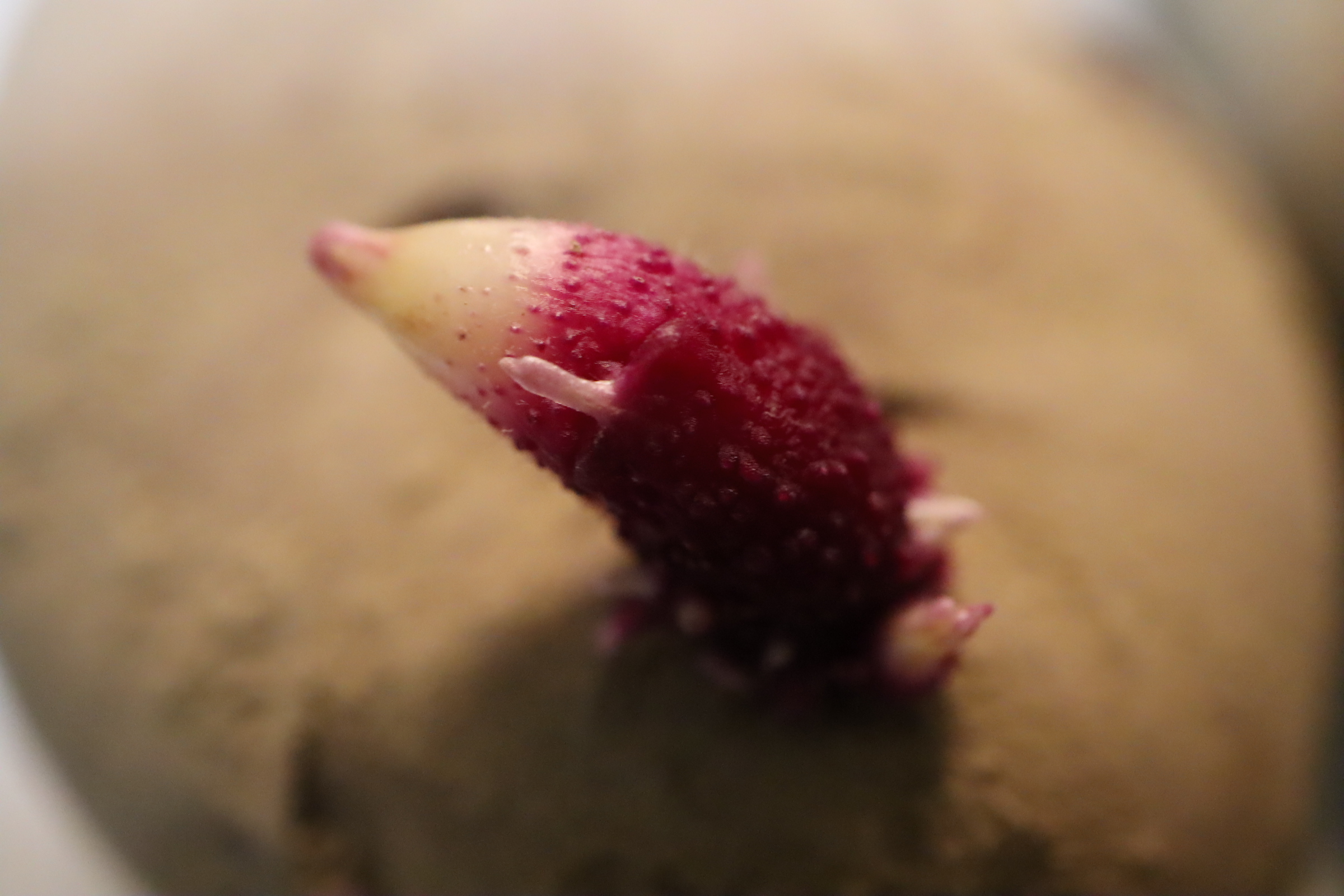初恋はレモンの味と言われるが、パッションフルーツほど魅惑の芳香と酸味は他にはない(と思っている)。極上の恋の味かも。「情熱」的なフルーツだと思いきや、トケイソウの仲間なのに十字架を背負った果物なのだ。謎めきは果肉の構造にも味わいにも現れる。杏仁豆腐の素を果皮に流し込んで果肉をソース代わりに。激旨だ。