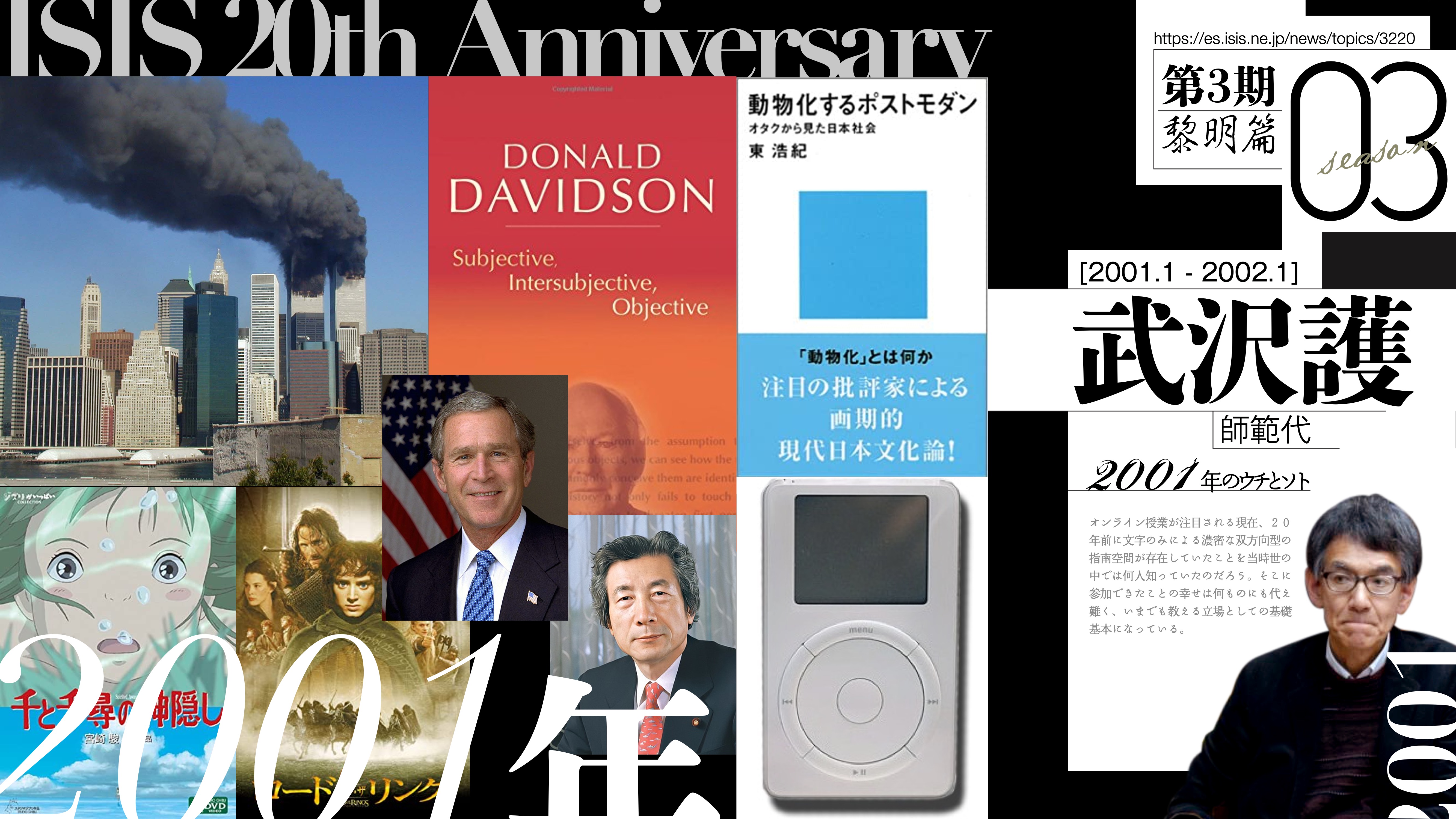 小泉内閣が誕生した2001年。米国ではブッシュ政権が発足し、9.11同時多発テロが起こりました。ユニバーサル・スタジオ・ジャパンが開園し、イチローがシアトル・マリナーズでメジャーデビューした頃、第3期は編集学校にとってチャレンジングな一年でした。教室数も少なく、師範代育成も夜明け前。様々な事情で師範代交代が相次ぐ中、木村久美子、太田香保、大川雅生、佐々木千佳も師範代として登板。最後まで全うしたのは武沢護師範代のみでした。「教育の情報化」が政策として始まったこの時期、数学教師の武沢師範代は編集工学研究所で開発をしていたデジタルプロダクトを自身の授業に取り入れたりとプロジェクトにも関わり、編集学校と蜜月を過ごしていました。