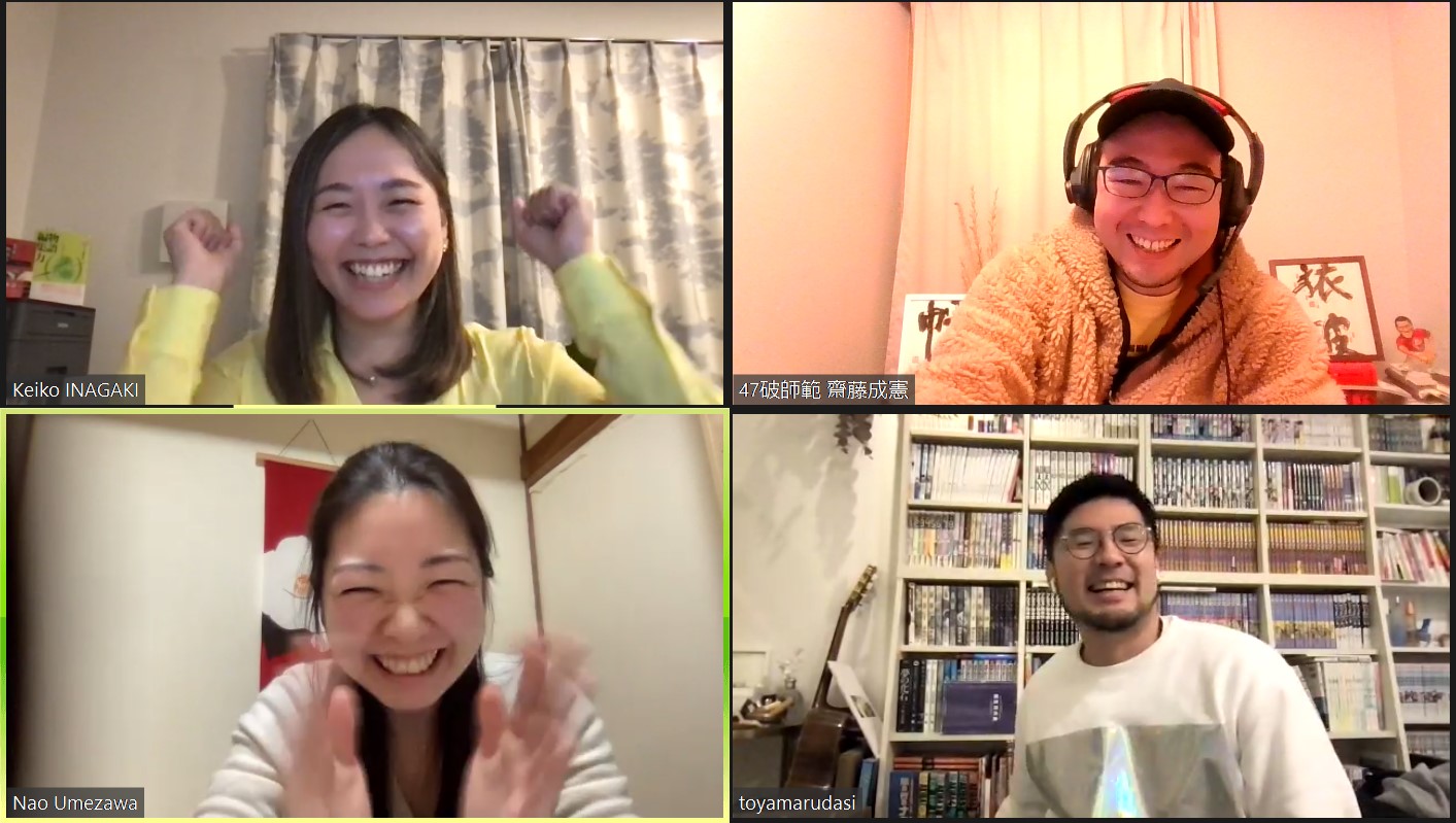 外山:47[守]では、北條玲子師範代のピアソラよろしく教室でした。そのZoom汁講で、稲垣師範代が助っ人として物語稽古のお話をしに来てくれたんです。「ミッション・