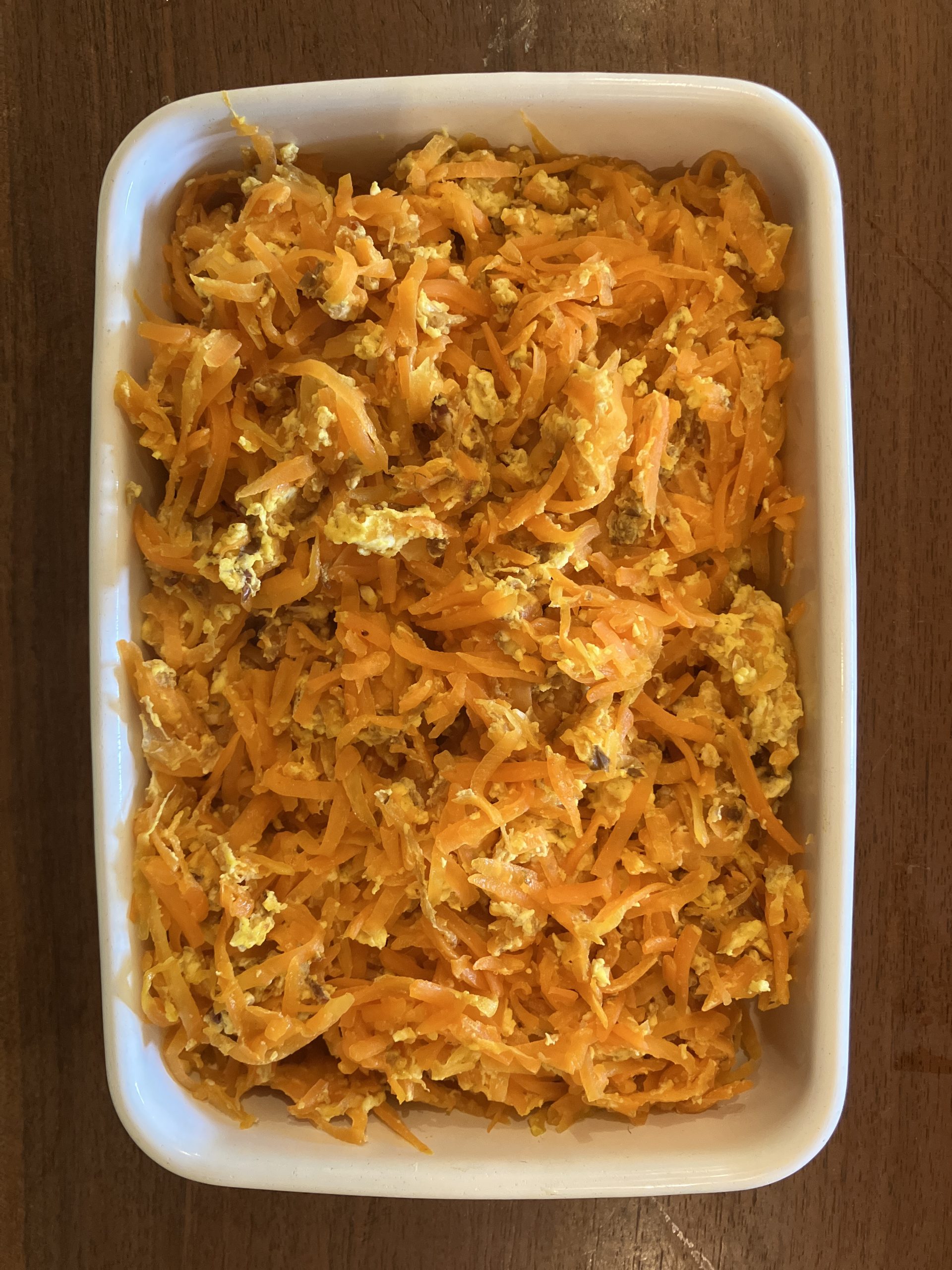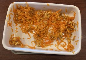 11)粗熱が取れた頃、にんじんしりしりの入った野田琺瑯を冷蔵庫に入れる。と、思ったらビックリ!!【AND/OR】ガチマヤー(食いしん坊)な長女に食い散らかされて、がっかりする。数日分の副菜作りならず…。