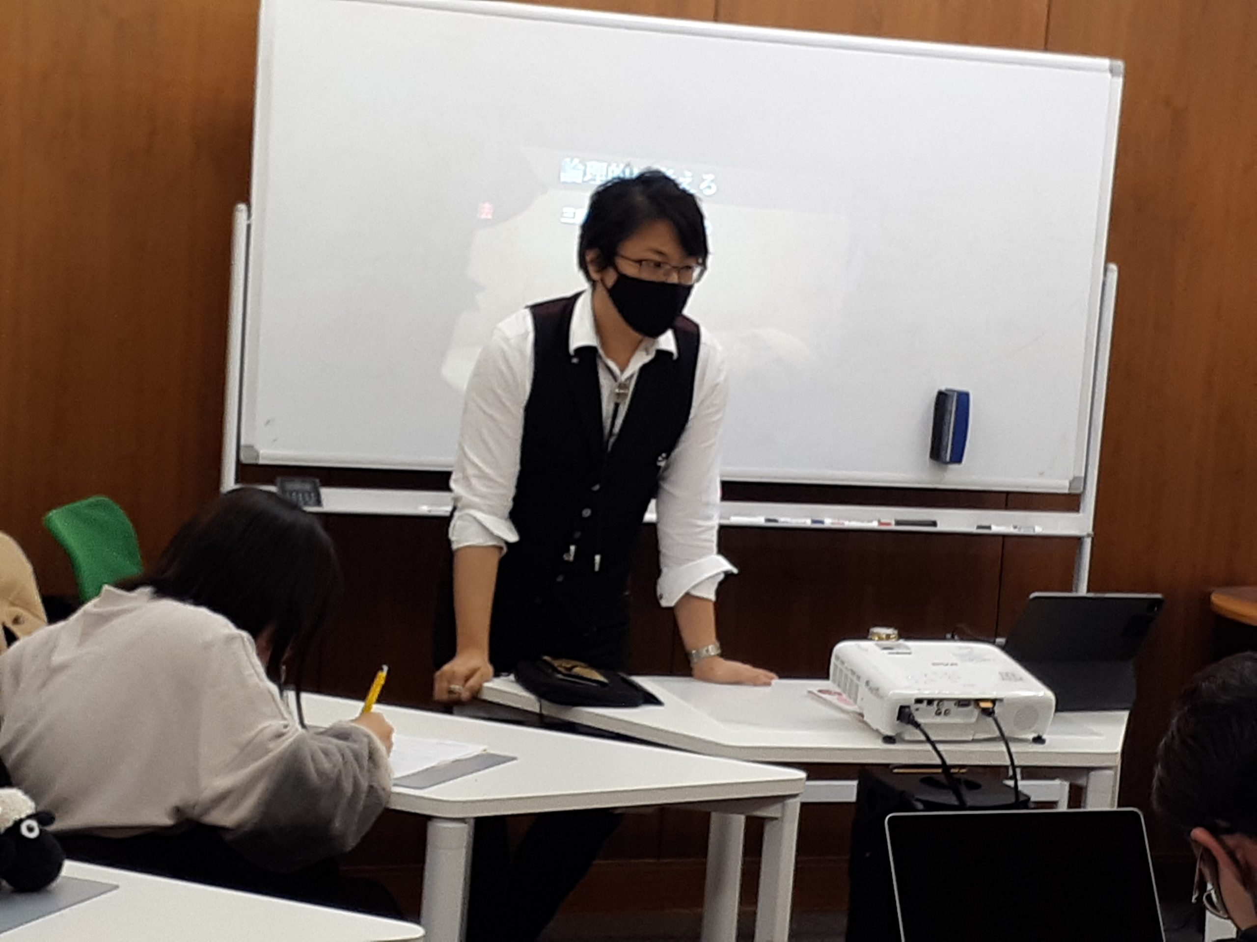 ・夜9時まで行われていたこの日の授業テーマは論理的思考。生徒たちとも和気あいあいで、love&logicを実践。マスクは当然、黒。