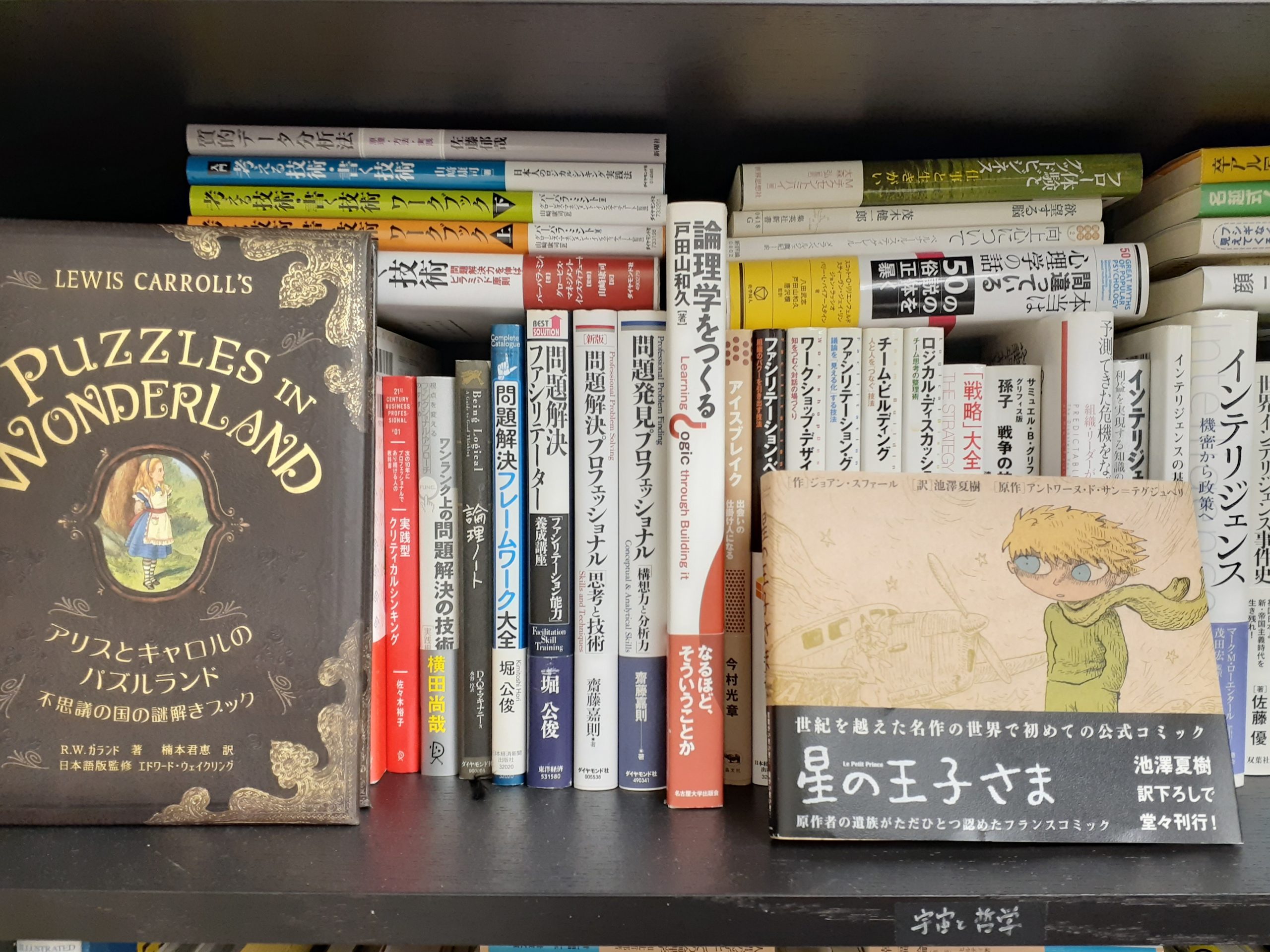 ・論理というシステムを動かすにはファンタジーや愛が不可欠。fantasy&logic、love&logic。教室の本棚では孫子やインテリジェンスに『星の王子様』『不思議の国のアリス』を組み合わせる。