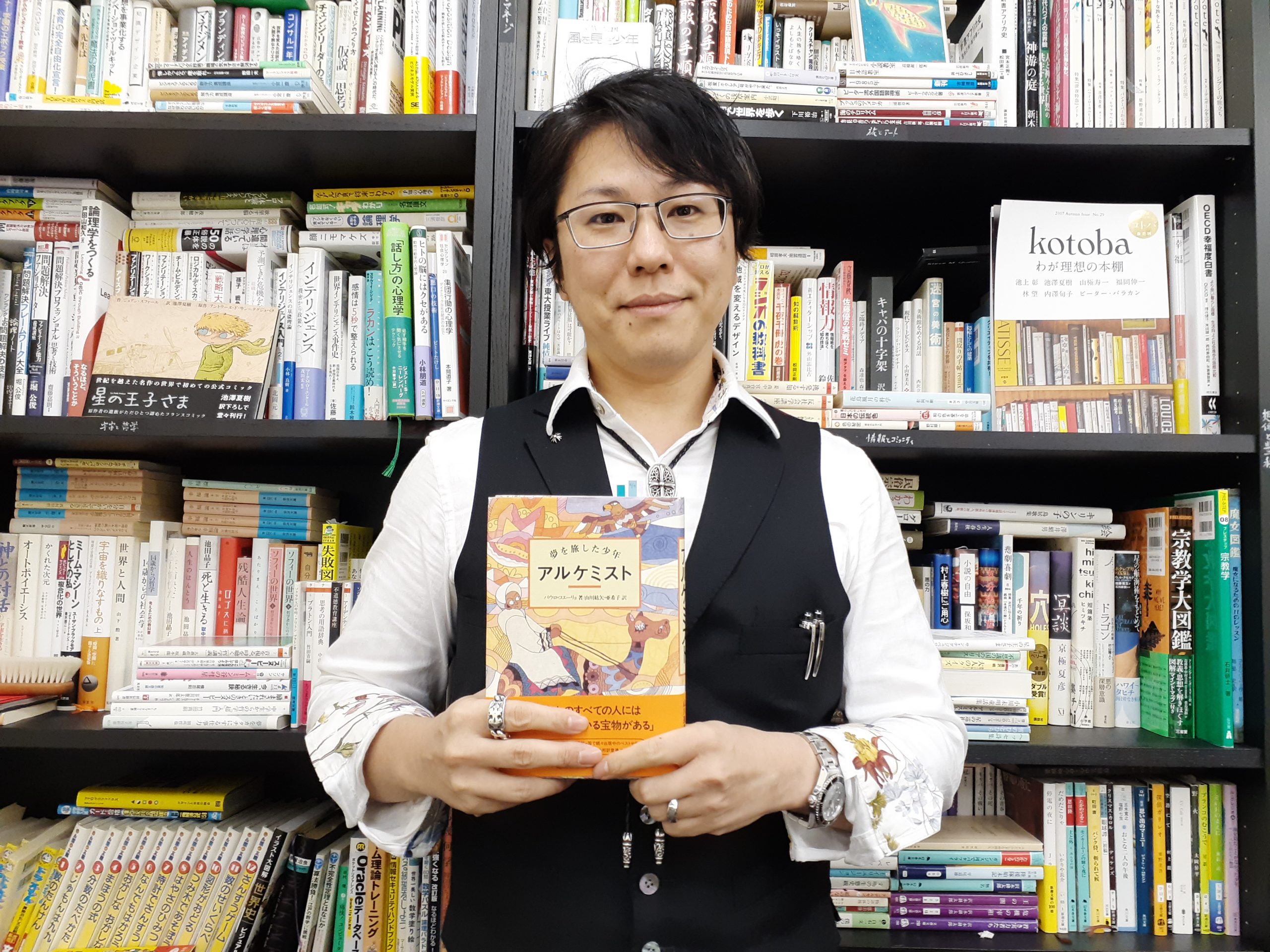 ・数ある本棚のうち、教室の本棚から一冊選ぶとしたら?との問いにアルスコンビネーターからの連想で『アルケミスト』を手に取る。