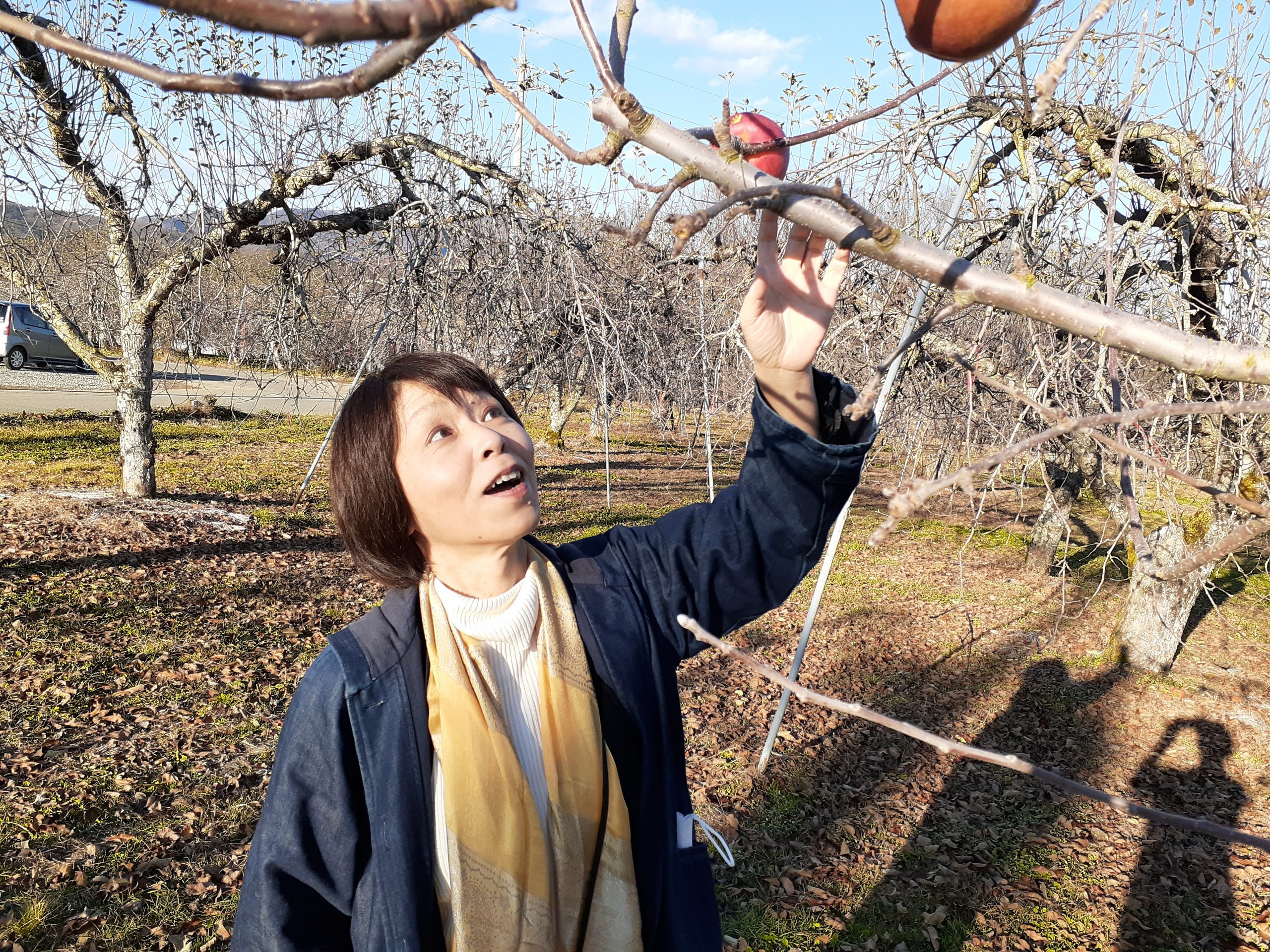 りんごオーナー制度を利用し、グラニースミス、ニュートンのりんごで知られるフラワーケントなど希少りんごのオーナーも務める(写真は別の品種。撮影者の映り込みはご愛敬)。