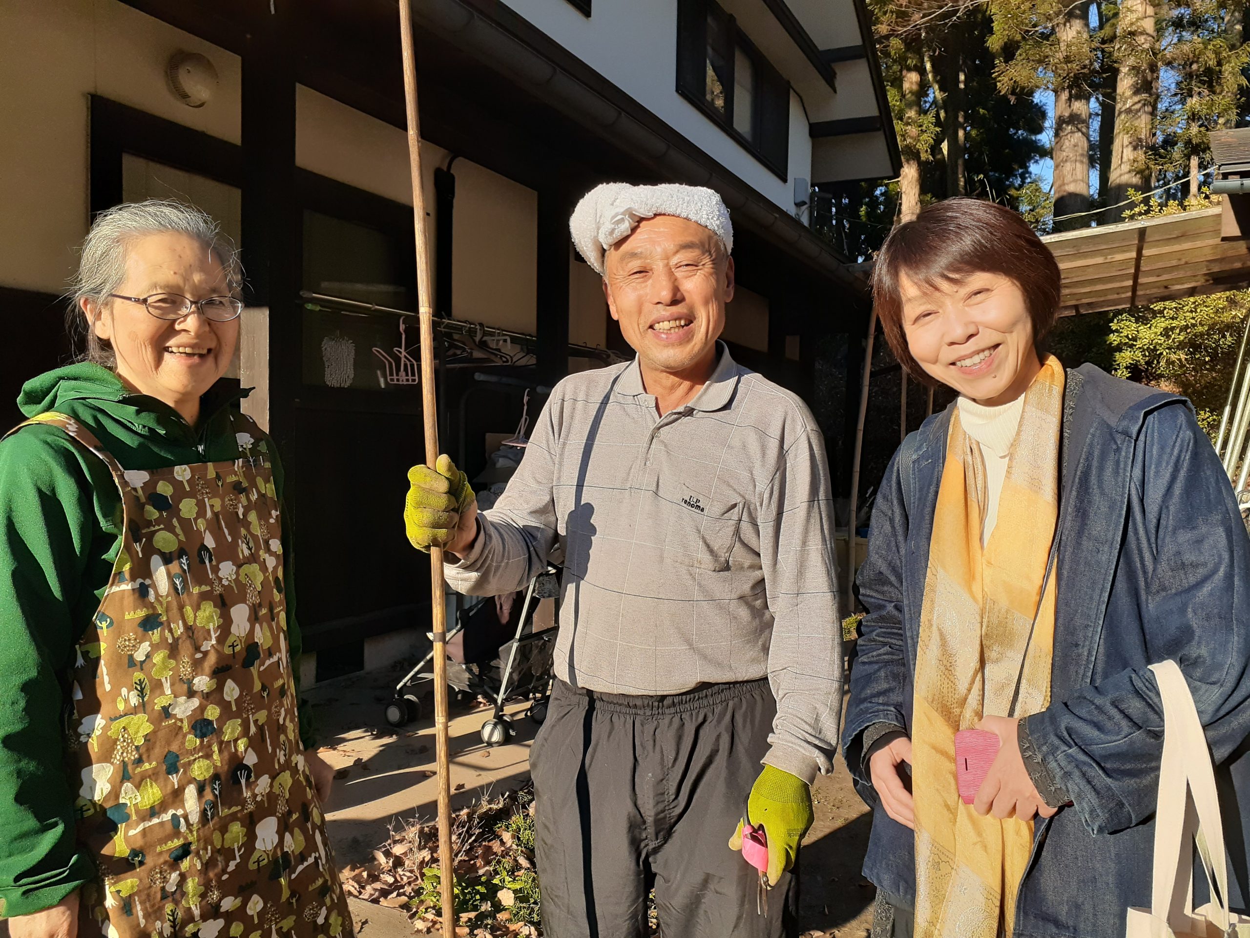 移住当初、飯綱に家が見つかるまで世話になった古民家カフェのオーナー夫妻と。「飯綱の親戚」と慕う。