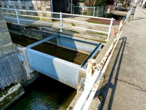 ▲用水ジャンクション。なぜ、高さの違う用水が? できた年代が違うのだろうか