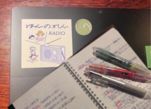 ▲破学衆時に初めて買った自分用パソコンとなぜか青ばかり減るボールペンとマーカー。
