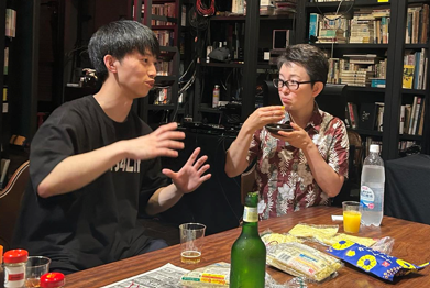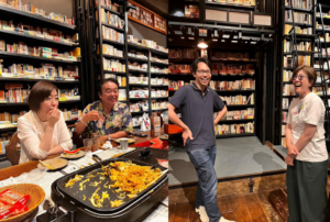 邪鬼蘇婆講(やきそばこう)とは、レジェンドから現役学衆まで総勢16名が集結し、本気でやきそばを炒め酒盛りをしながら、本楼中に匂いを充満させるという蛮行で*、草創期から現在の編集学校、今後の大惨寺や同門団(≒イシス同窓会)についての話が、賑賑しく愉快千万に交わし合われた。