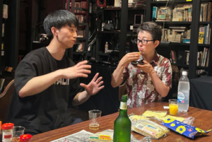 右:ぶっちゃけトークに花咲かす白馬ッ苦連さんと田中晶子所長