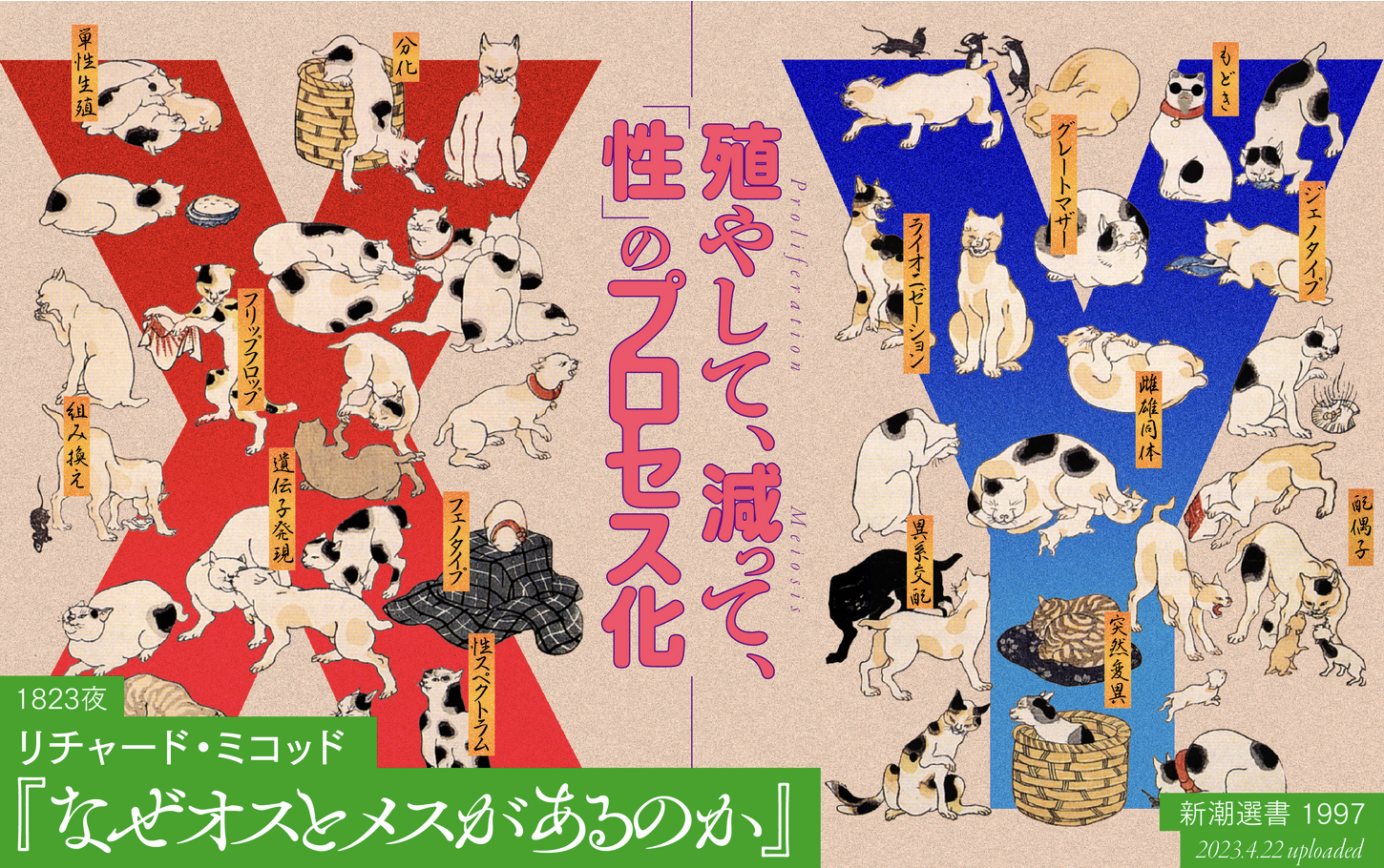 「おっかけ!千夜千冊ファンクラブ」。ちぢめて「オツ千」。千夜坊主こと林頭の吉村堅樹と千冊小僧こと方源(デザイナー)の穂積晴明。「松岡正剛の千夜千冊」ファンを自認する二人が、千夜のおっかけよろしく脱線、雑談、混乱の伴走するショート・ラジオ。千夜千冊がアップされるたびに「おっかけ更新」いたします。第46回はリチャード・ミコッド『なぜオスとメスがあるのか』です。