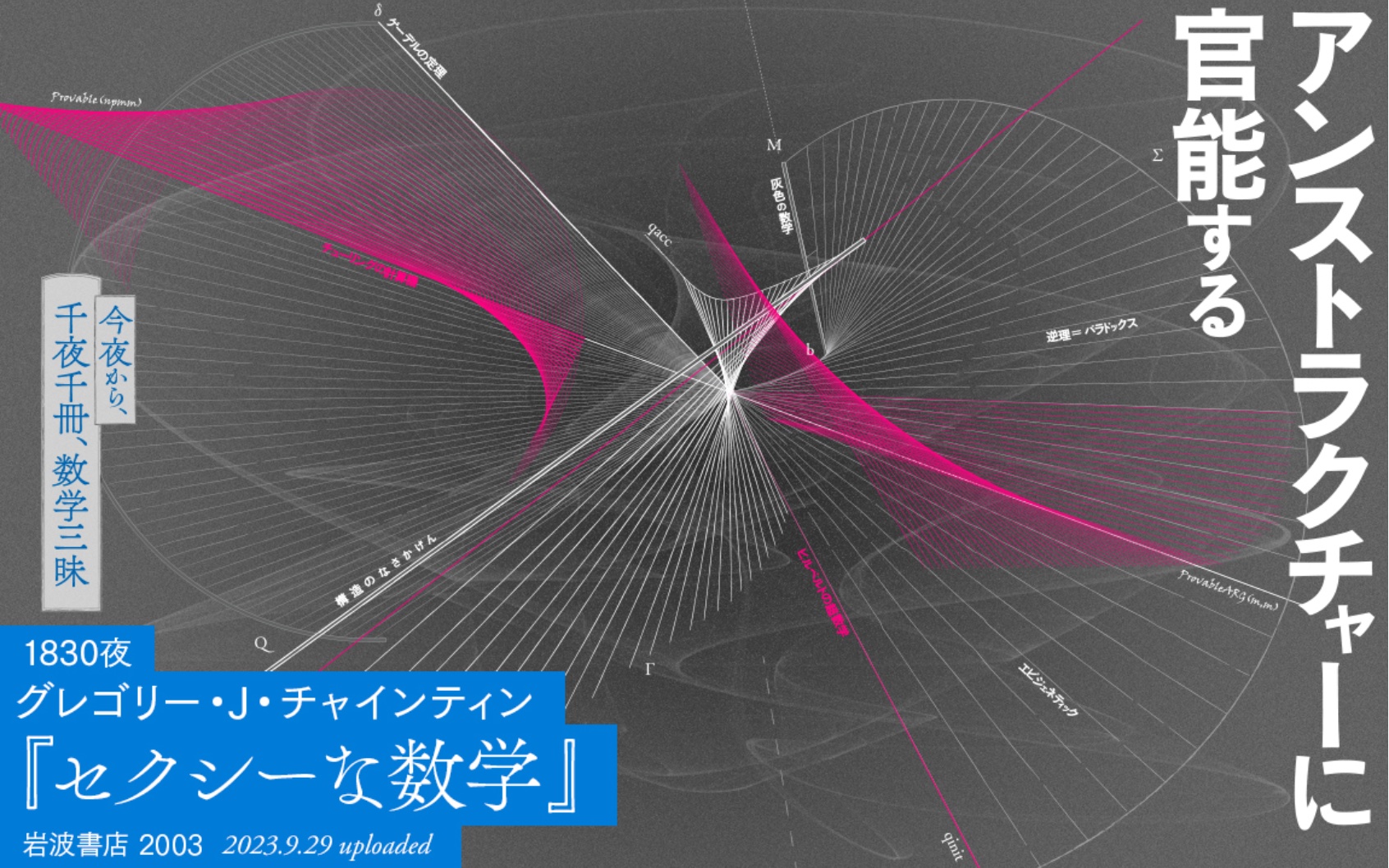 「おっかけ!千夜千冊ファンクラブ」。ちぢめて「オツ千」。千夜坊主こと林頭の吉村堅樹と千冊小僧こと方源(デザイナー)の穂積晴明。「松岡正剛の千夜千冊」ファンを自認する二人が、千夜のおっかけよろしく脱線、雑談、混乱の伴走するショート・ラジオ。千夜千冊がアップされるたびに「おっかけ更新」いたします。第53回はグレゴリー・J・チャインティン『セクシーな数学』です。