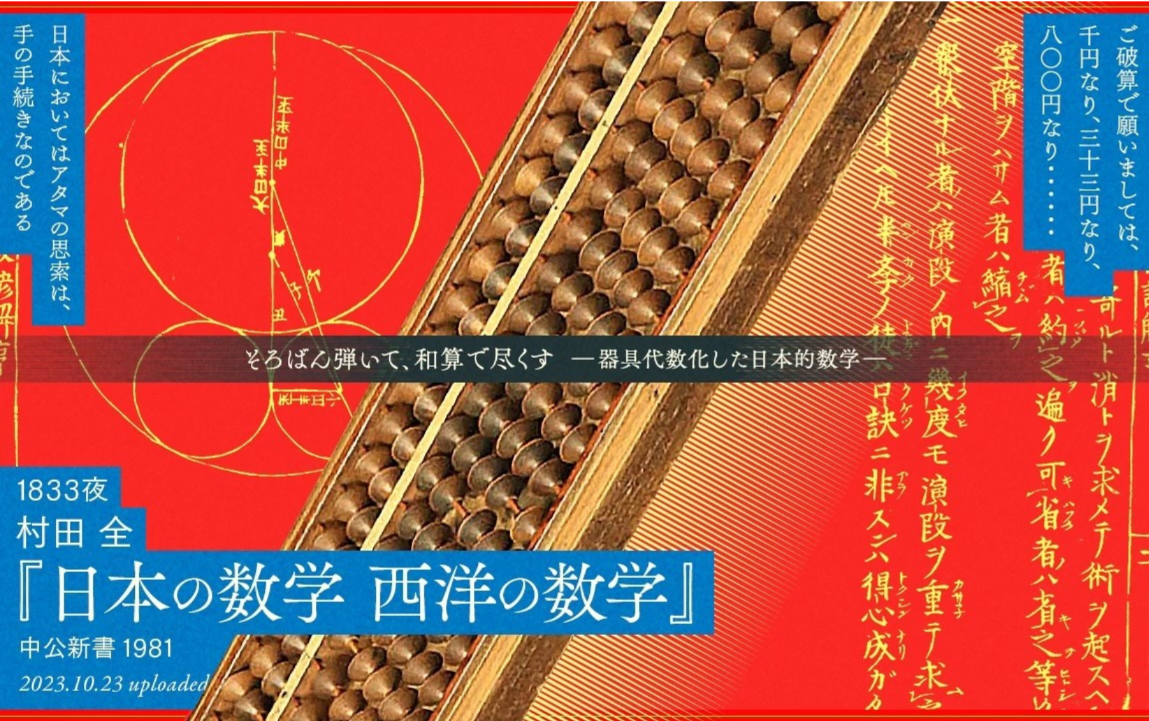 2024年始に収録したオツ千。季節外れの新年の挨拶からスタートするのは『日本の数学 西洋の数学』。中国から入ってきた算木とそろばんが、律令時代、『塵劫記』を経て、江戸の関孝和へ。実用を重視した器具代数としての日本数学はいかに発展を遂げていき、どこに限界があったのか。建部賢弘の「尽・不尽」から、その固有性と可能性を考えます。