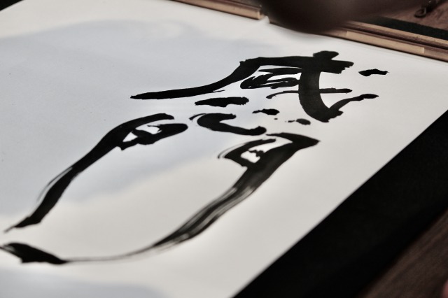 9月某日、今回の感門之盟に備えて何枚もの書を書く松岡校長。どこでどうお披露目されるかは当日までお楽しみに。