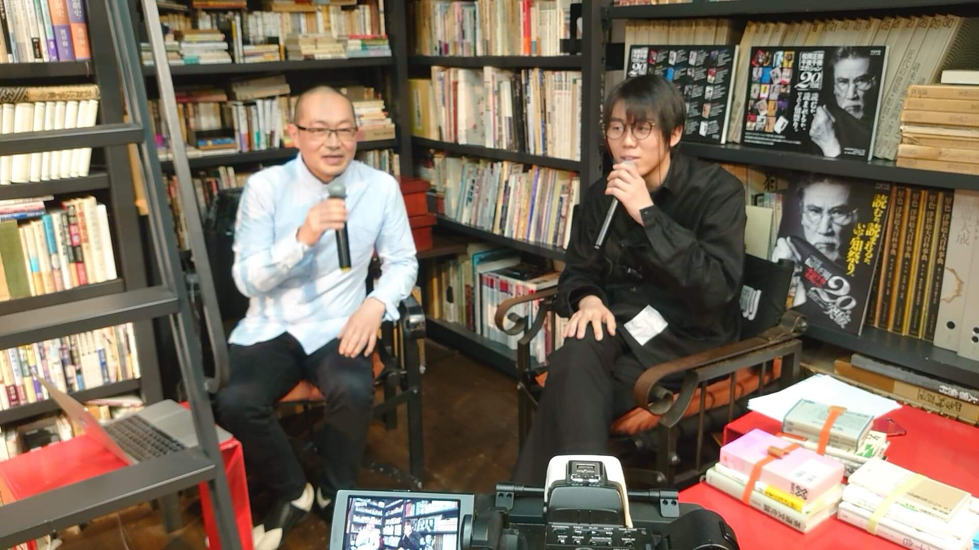リアル開催の感門之盟では名物コーナーであったが、講座合同開催やオンライン開催になってしばらく休止が余儀なくされていた。が、そんな眠れるお宝コーナーを奴らが放っておくはずがない。そう、「オツ千」コンビでイシスを席巻する林頭吉村堅樹とデザイナー穂積晴明である。彼らが軽口を叩き、本楼の蔵書を高値で売りつける。この蔵書には、校長松岡が直々にサインや落書きをした正真正銘のお宝だ。