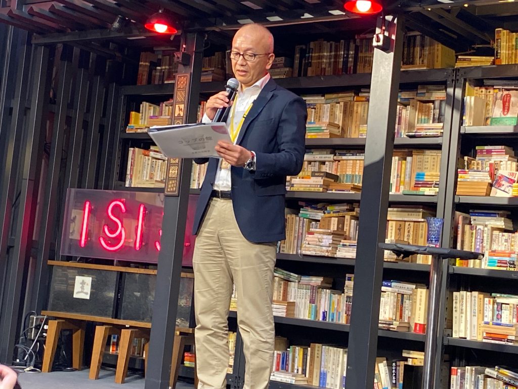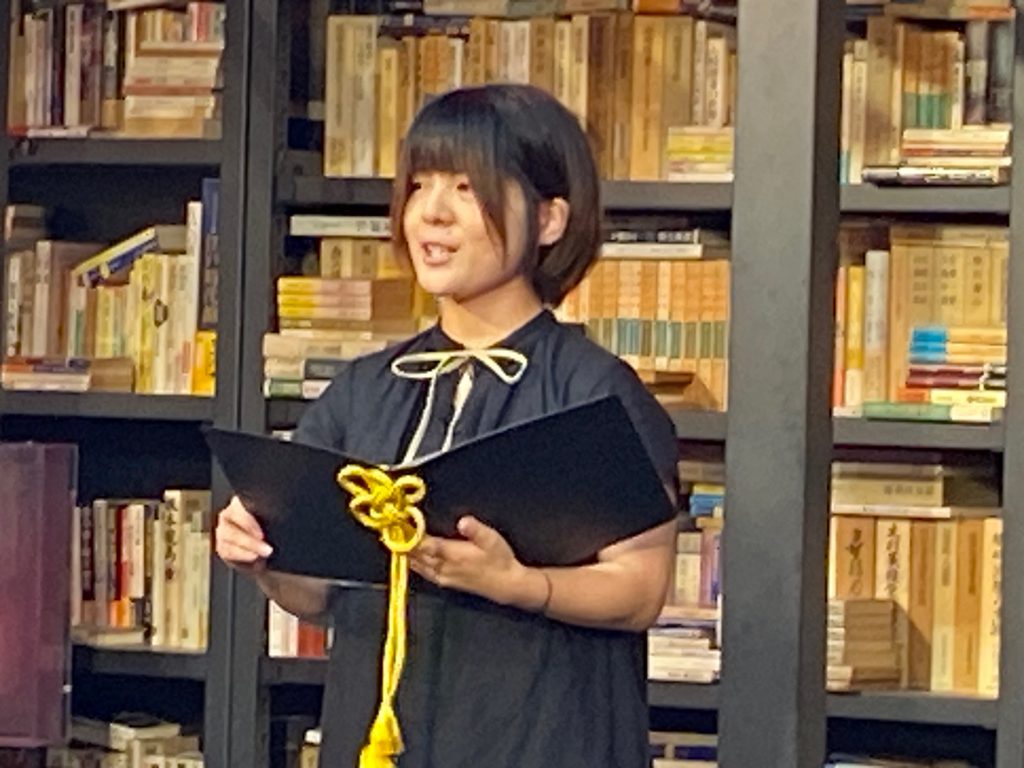 6回めを迎える今期の特徴は「インターナショナル」。校長松岡正剛の本の中国語訳を多数手がける孫犁冰(ソン・リビン)氏、50[破]で50gエンシオス教室の田中志保師範代のご主人で、日本文化にも大きな関心を寄せるトーマ氏、世界読書扇伝[離]火元組の小西別当師範代が審査員に迎えられた。