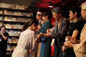 鈴木康代[守]学匠から先達文庫を受け取る山下雅弘師範代