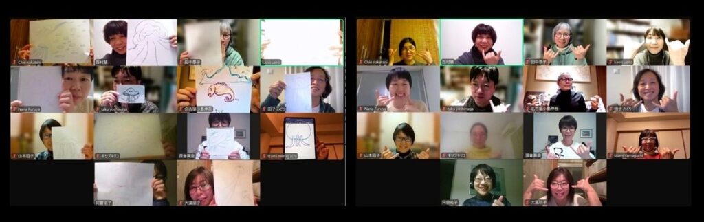 (千夜千冊を輪読した後、2分でクラゲのお絵かき遊びに湧いた群島ククムイの乗組員たち)