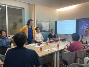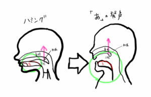 茶人D:身体から「音を出す」ことと「声を出す」ことは体感としてちがっていた。ハミングから「あ」となる瞬間を意識する経験なんてそうそうないよね。言葉もそうだけど、いかに声を無意識(無自覚)にだしていたかということだな…。