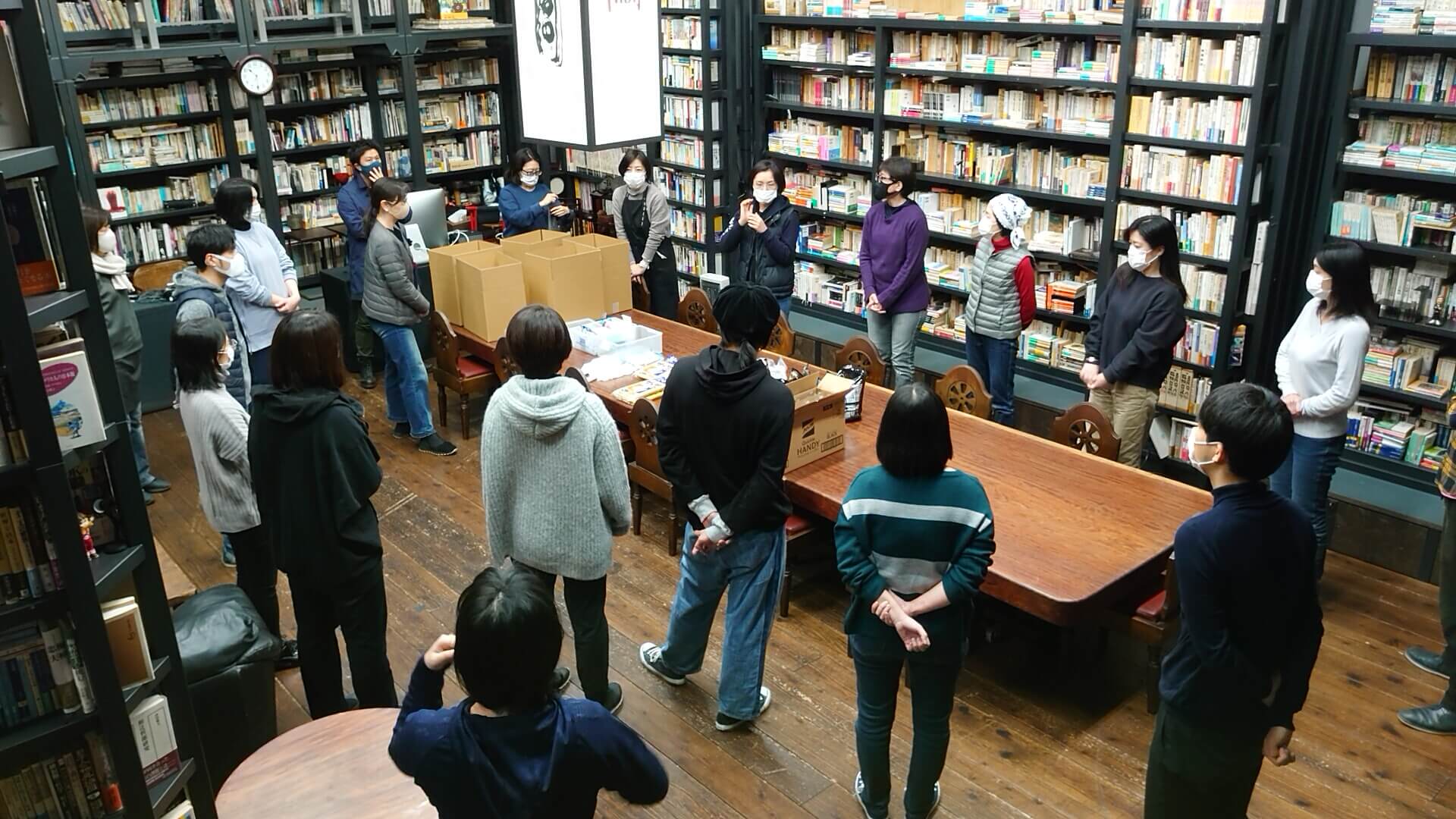 早い者勝ちでめいめい棚の前に陣取る。1階の本楼は日本に関する本ばかり2万冊。縄文から昭和までの歴史、黄表紙から満洲映画までの近世近代メディア、文様や意匠といった技芸、外国人や哲学者による日本論、万葉から現代までの詩歌、神道仏教に民俗学、歌舞伎や能の芸能、露伴・漱石から円城塔・村田沙耶香までの文学といったラインナップだ。