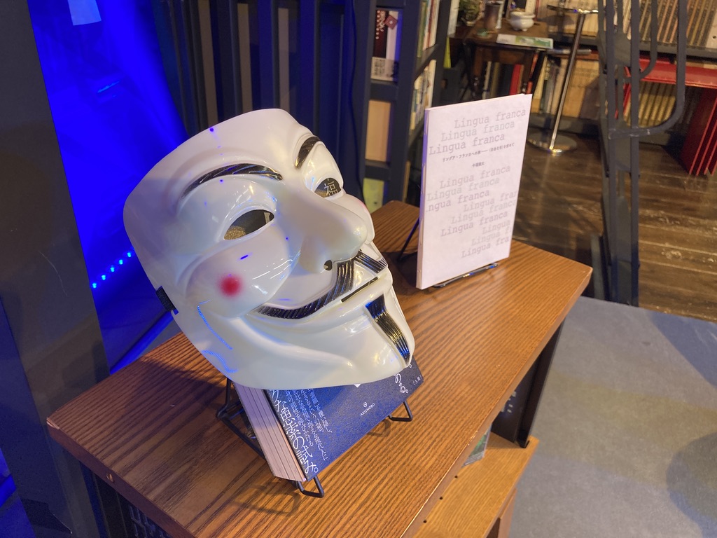 壇上で、文化人類学者・今福龍太さんの新刊『仮面考』のカバーが外され、広げられて、裏返された。そこには大小さまざまなテキストの塊がびっしりと並んでいる。ぱっと目に入るのは、「離脱せよ」。重要なテキストは裏にこそあったのだ。