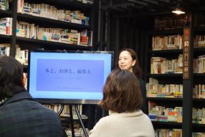 その後、参加者同士で本棚から選んだ書物を交換するワークなども行われました。クロージングの段階で参加者たちは、エディットツアーを通じてモノの見方を自由にし、未知を取り入れる実感を得たことでしょう。今回のワインは外国製でしたが、次にエディットツアー特別編が行われる場合、日本製のモノが選ばれる可能性もありますね。連想されるワードも大きく変わることになるでしょう。