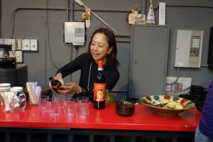 本棚の紹介を行った後、休憩時間では特別編としてお待ちかねのワインが参加者へと振舞われました。今回の商品は2つです。1つ目はフランス・アルザス地方のヒューゲル。2つ目はイタリア・シチリア島のドンナフガータでした。ナッツ、チーズ、クラッカーなどのおつまみを食べながら、参加者たちは興味のある本棚を見学します。