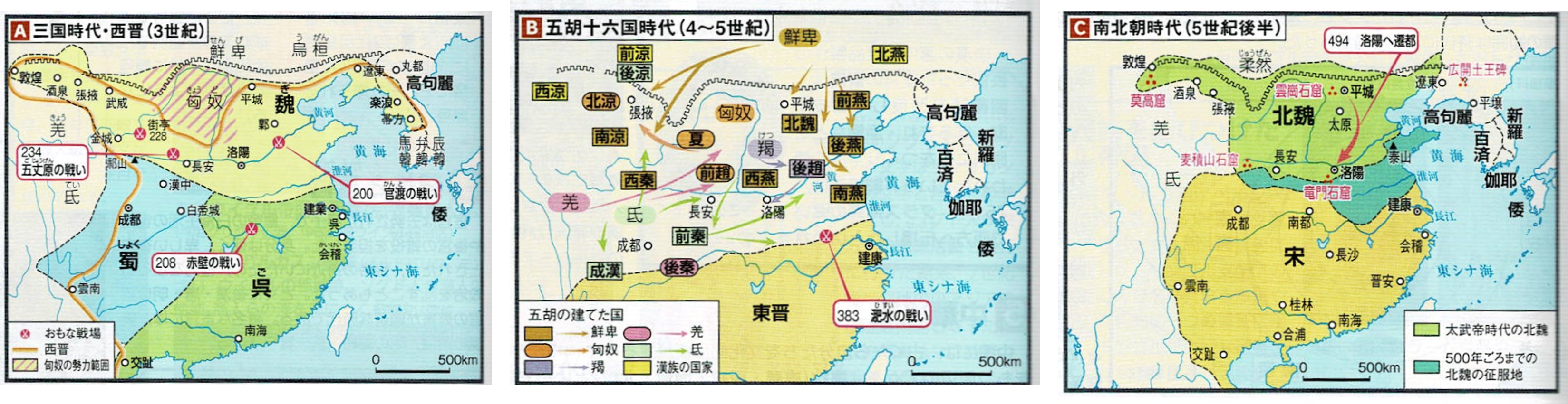 317年、中国大陸で東晋が建国された。華北が五胡十六国に分割されていた間、東晋は約100年間漢民族の文化を維持し、発展させていく。東晋の都である健康は南朝の都として繁栄し、現在の南京となっている。