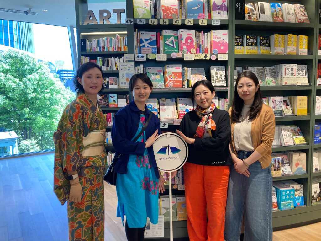 ▲虎ノ門ヒルズmagmabooksにて。左から、おじー、はるにゃ、ニレヨーコ、ウメ子。