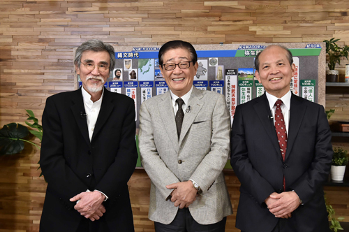 第1回目のラインナップは「人類はどうやって日本へやって来たのか」「DNA解析によって分かった日本人のルーツ」「縄文時代、日本にはアートの心があった?」。日本の古代史は、架空の8人の天皇「欠史八代」や邪馬台国の所在をめぐる議論など、いまだに多くの謎に満ちている。しかし近年の調査や研究により、新しい発見が次々となされてきているという。そのような「古代史の今」について、ナビゲーターの関口宏さんの進行のもと、歴史学者の吉村武彦さんの最新の知見もふまえた解説に、松岡校長がコメンテーターとして古代社会や文化について新しい見方や切り口で読み解いていく。