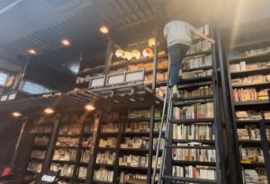 だがそれはいらぬ心配だった。雨を掃うようにさっそうと現れた参加者Eは、本楼を案内されるや否や、軽快な足取りで梯子を登り、子供のような好奇心で本棚を探索する姿をわたしたちに見せつけた。