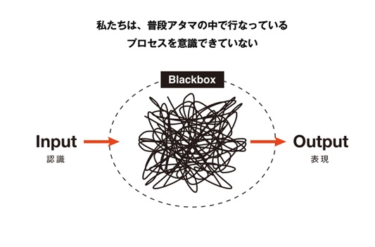 ブラックボックスのなかで行われるプロセスとして、情報の収集から誰かに伝えるための演出まで、いくつかの段階がある。質の高いアウトプットのためには、まずインプットの充実をはかりたい。そのために、まずは連想を軽視しないことだ。