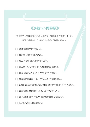 <多読ジム>受講を迷われている方は、下記の《多読ジム問診票》もぜひご活用ください。