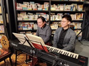 さらに、今月スタートした多読アレゴリア「音づれスコア」から、師範代でピアニストの瀬尾真喜子と、師範でCD5万枚を所持する岡村豊彦も駆けつけた。