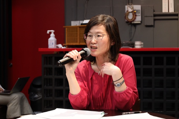 堂々たる語りでクロニクル編集術を解説する歌人・天野陽子[破]師範。
