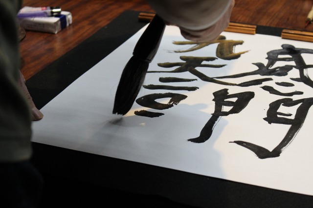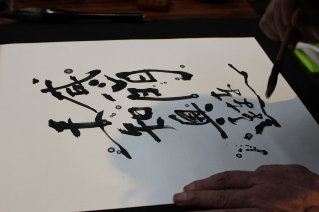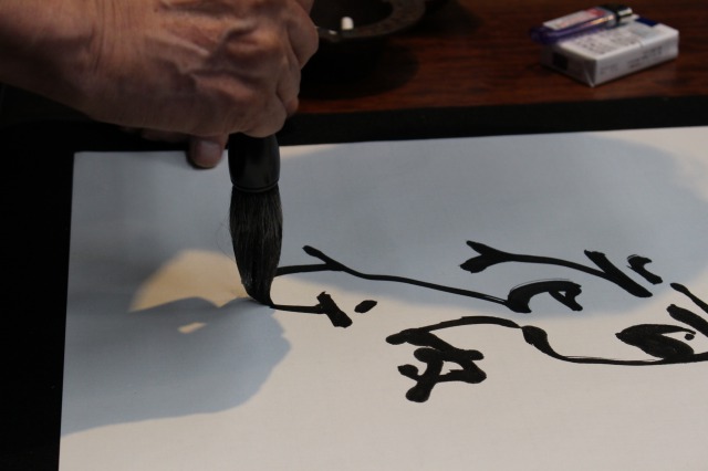 初師範に贈る校長の書。墨が乾く前は別人の顔。