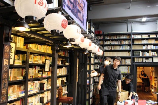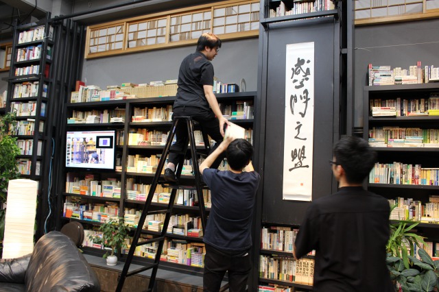 「あそこにISISネオンを置こう」リレー方式であっという間に本を下げる。
