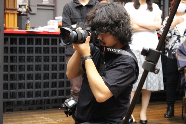 スチール担当はプロカメラマンの倉田さん。所狭しと動き回りシャッターチャンスは逃さない。