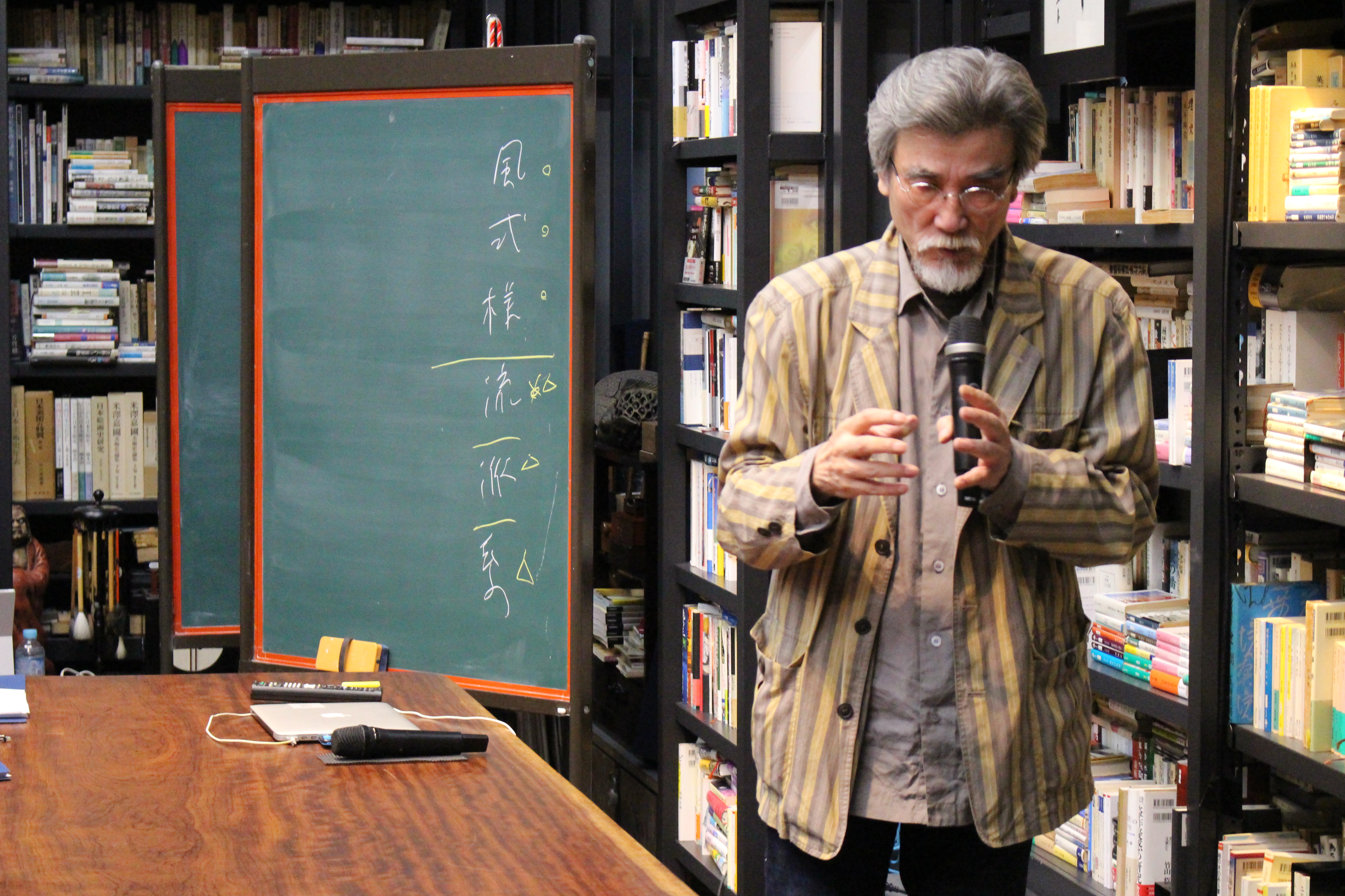 Shot 3:やまぶき道場花伝師範 奥本英宏(リクルートワークス研究所)。花伝式目M4 Managementの改編を指揮し、この日も"イメージメントとマネージメント"講義を担当。