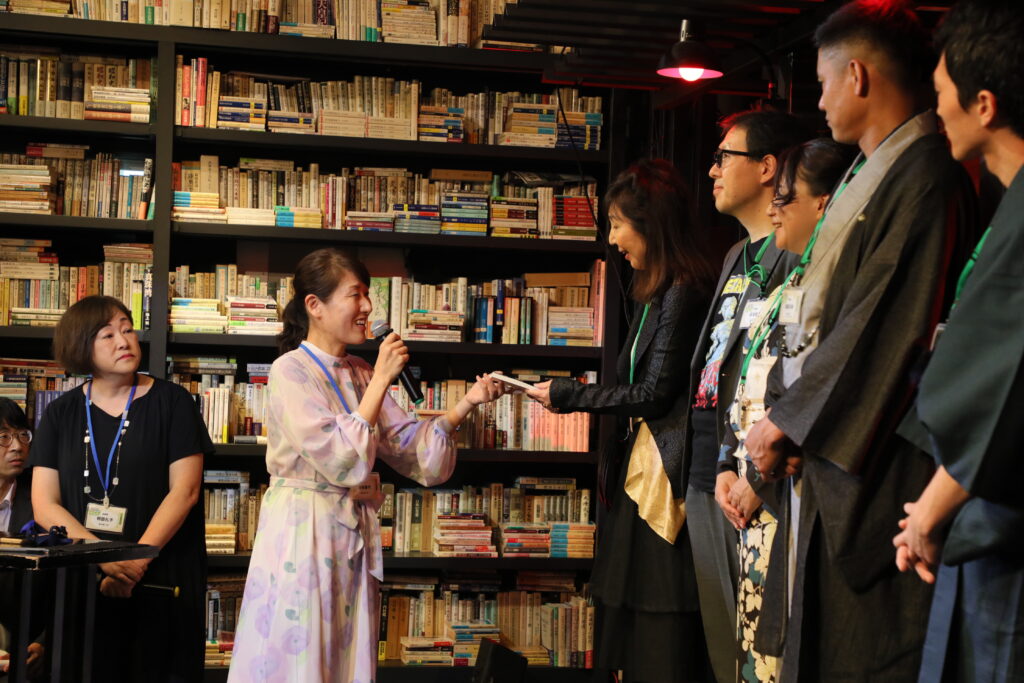 先達文庫には田中優子学長と鈴木康代学匠の手書きメッセージも添えられている