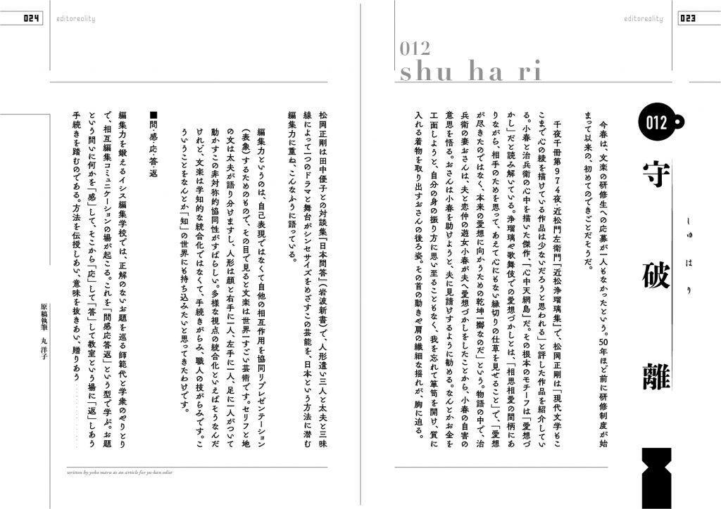 イシス編集学校では、「一緒の守、一期の破、一生の離」と言っている。「守・破・離」の3つのコースや花伝所を経て、師範代となって、編集道の「守」を修めることができるのだと、イシス編集学校の吉村堅樹林頭は語る。そこからまた、新たな編集道が始まっていくのである。