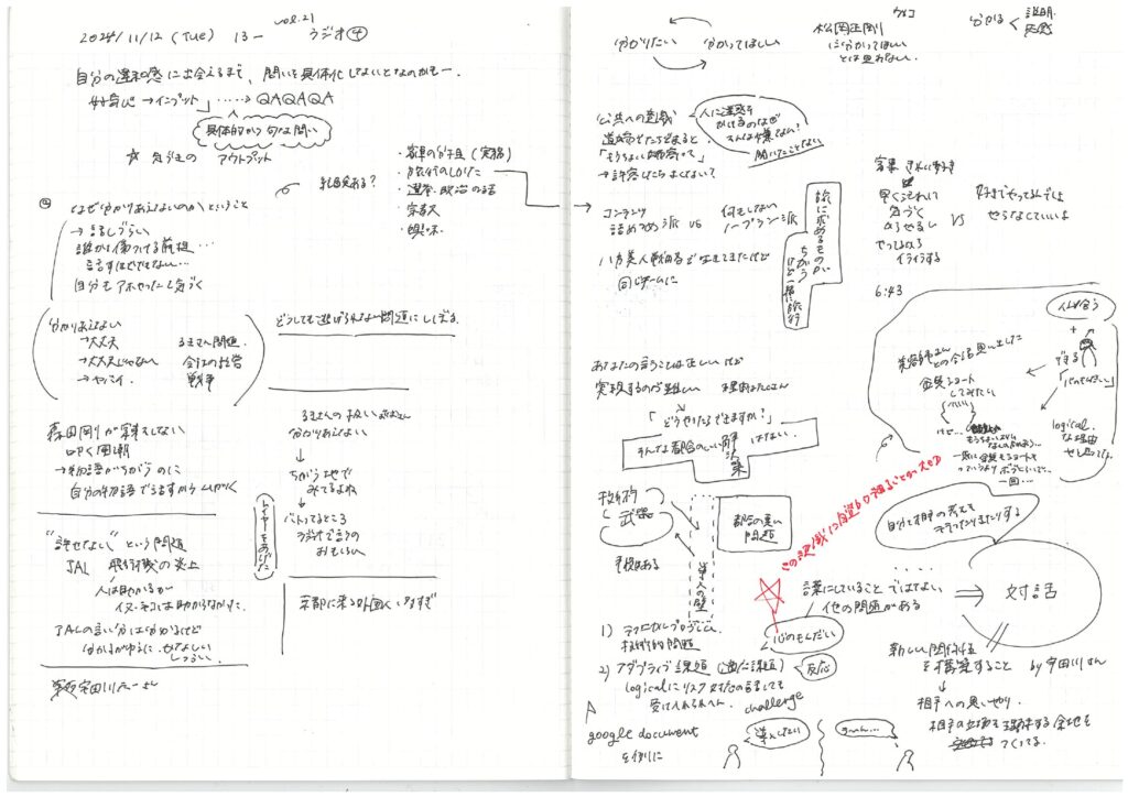 ラジオ収録に同席した、本記事執筆者のノートを公開します。ラジオの復習や思考の手すりになれば幸いです!