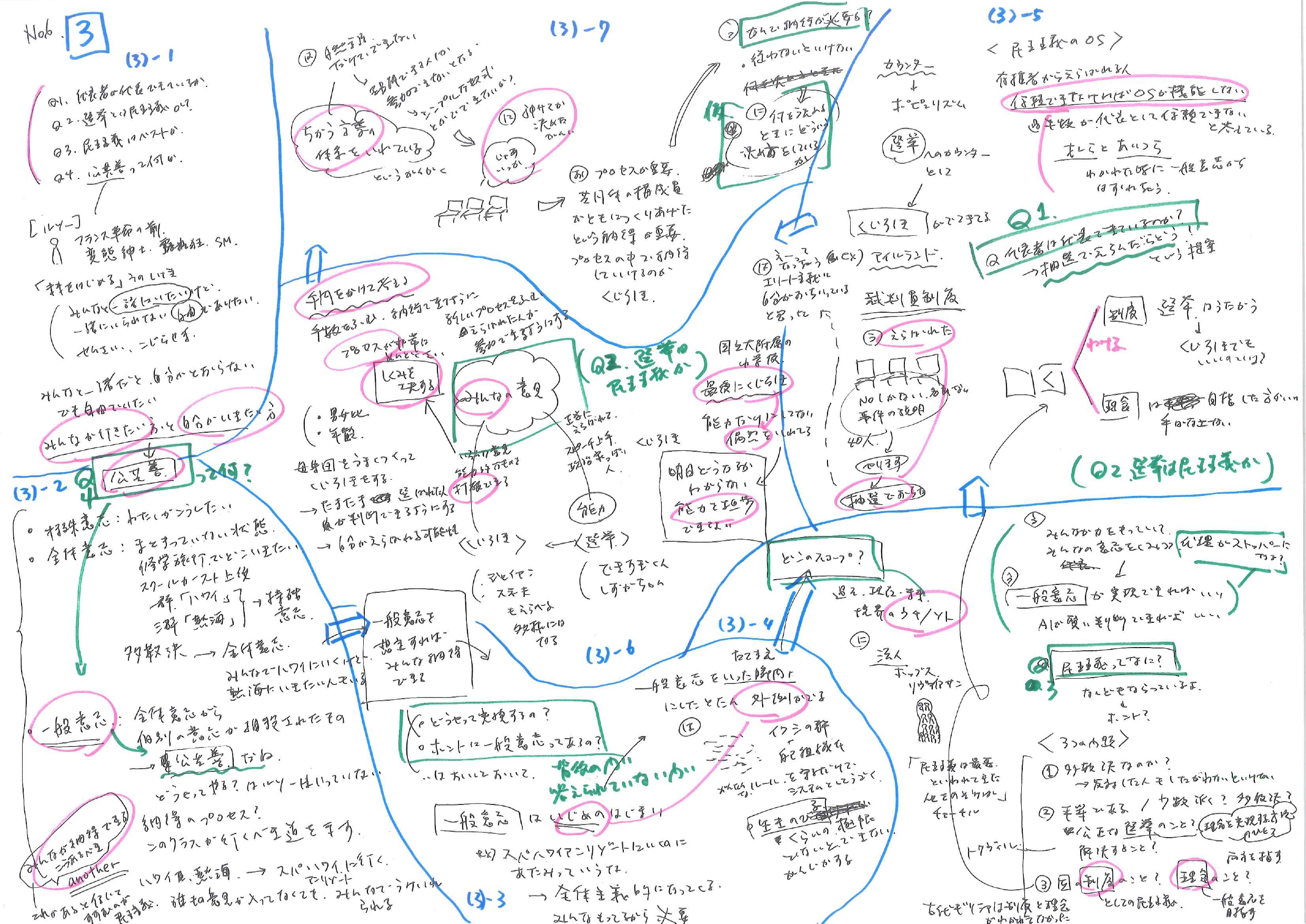 民主主義とは?前回からの4つの問い・・・①代表者が”代表”できてますか?②選挙って果たして民主主義か?③民主主義ってベストなのか?④公共善って果たして何なの?/ルソーという人。変態紳士?傷付きやすい人?/ルソーのいう特殊意志、全体意志、一般意志の違い/一般意志という大義名分の危うさ/いいTEAMとは何か―自己組織化するイワシの群れを例に/「みんな」の境界線はどこにある?問い続けることの重要性/チャーチル「民主主義は最悪の政治形態といわれてきた。他に試みられたあらゆる形態を除けば」/理念と制度を分けて考える/ポピュリズムに対するカウンター くじ引きという選択肢(例:アイルランド、フランス)/日本の裁判員制度/くじ引きに対する反応に隠れるエリート主義/ウメコの疑問「選挙は、能力によって人を差別している?」/この決め方で「大丈夫?」重ねる手数の多さこそ、くじ引き民主主義のミソ/はるにゃ「わたしたちは自然言語に頼りすぎてないか?例えば、数学を持ち込めないか」/決め方、どう決めるという民主的状態へ