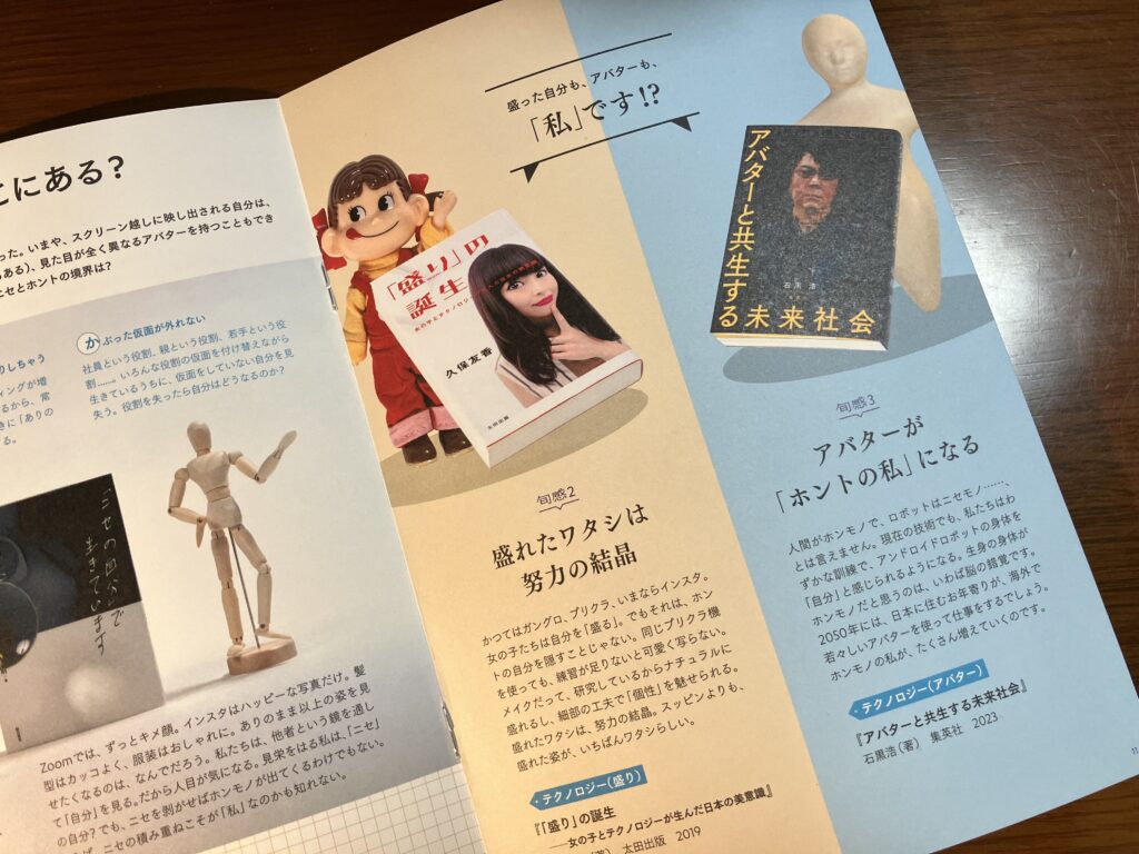 アバターって何ですか/『アバターと共生する未来社会』石黒浩を読んで/東急ハンズで接客してくれるロボット「Sota」/遠隔ガンダム/この顔・この声・この私を脱ぎ捨てる/コワモテでもアバターなら子どもと仲良くなれる!/身体の属性、ひきはがしたくない?/見た目によって、できることが制限されてきた/玉城絵美『ボディシェアリング』/1つのアバターに複数の人格/コレクティブ・ブレイン化/これまで「文字」に頼りすぎてきた。アバターなら「ボディランゲージ」も/複数の感覚を同時に/抱っこしながら電話できるハグビー/映画『アバター』/宇宙の果て、海底、火山で研究ができる/宇宙は広い、寿命は短い/人が死ななくなってくる?/生身がホント?