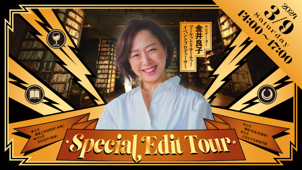 関連記事【参加者大募集!】3/9(土)スペシャルエディットツアー「本と、ワインと、編集と。」~毎日をもっと豊かにする編集術~