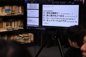 4月7日に本楼で開催したエディットツアー特別編は、ナビゲーターに編集工学研究所の橋本英人が立ち『情報の歴史21(情歴)』を用いて、イシス式クロニクル編集ワークを行いました。中高で歴史を教えてきた師範バニー蔵之助(バニー師範)が強力なサポーターとして、企画から立ち合います。実は『情歴』を使ったエディットツアーは今回初めて。バニー師範の「近過去はぼやけて見える」という一言から、「平成」をテーマにすることがするすると決まり、橋本がそこから一気にワークに仕立てていきました。