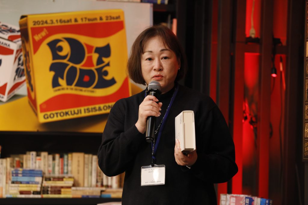 全身で一冊の本を引き受けて言葉を紡いだ翻訳家たちの作品を、著者と翻訳家の両者の方法を使い、体当たりで創造的にライティングし直した多読ジムの30名の読衆たち。そこからどんなクリエイティブが溢れてことばの渦になったのか。鴻巣さんは「鴻巣友季子賞」をひとりと、3名の優秀賞を選考した。賞として贈られたのは、鴻巣さんが作品からイメージした読衆のために選んだ翻訳書だ。また、創作という点で評価の高かった4つの作品には創作特別賞が贈られた。