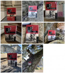 他のメディアとの組み合わせに挑戦されたのは、このお三方です。チカーラさんはダリと、アクヤンさんは角川武蔵野ミュージアムの古代エジプト展と、ウトウトベンチプレスさんは物語の映像作品と。思い切った構図(チカーラさん)、思い切った組み合わせ(アクヤンさん)、思い切った盛り込み(ウトウトベンチプレスさん)ですが、本がサブ的な位置付けに見えるのが惜しいです。『物語の函』に視線が注がれるような撮り方にもチャレンジしてみてください。