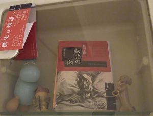 洗面台の戸棚で撮影されたという異色作!本の脇を固めるのはムーミン、黄門様、サックス犬となかなかのカオスが広がっています。一瞬ギョッとしましたが、じわじわと福澤さんのユニークネスが写真から滲み出てくるから不思議です。戸棚に閉じ込めてしまったのは少し本が息苦しそう。森などに連れ出してあげるとムーミンとの対話も広がりそうです。