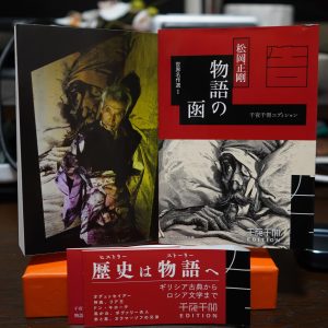 市川さんと大塚さんは、本を分解し、ご自身のデスクで撮影されました。きっと『物語の函』も分節しながら読み耽られたことと思います。この方向性でしたら、ミン・ドン・キホーテだけで打ち出す!ボロボロになった本体だけで撮る!など振り切った作品も見てみたいです。